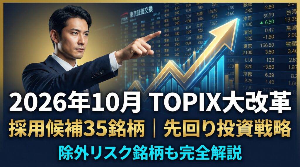 【2026年10月TOPIX入替】採用候補35銘柄と除外リスク銘柄|先回り投資戦略と注意点を完全解説