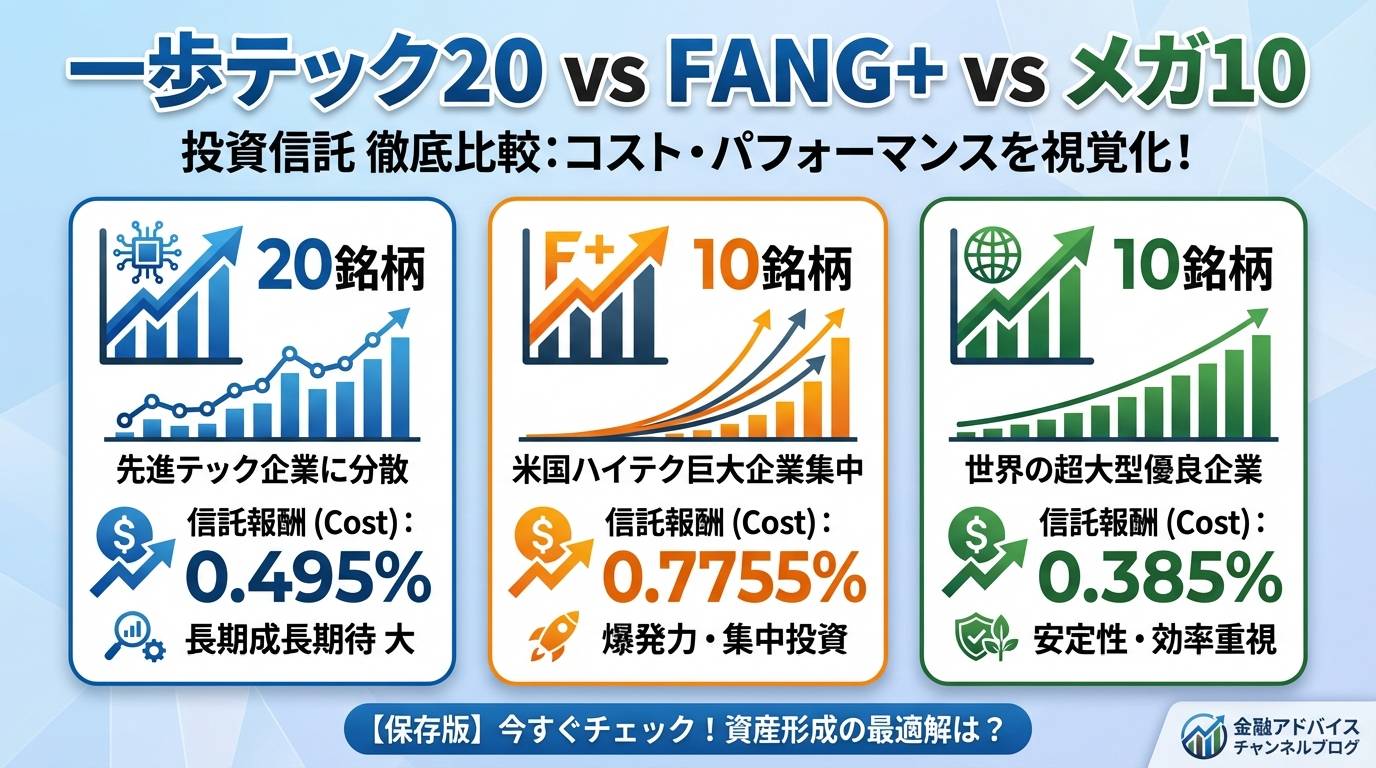 一歩テック20 vs FANG+ vs メガ10|2026年投資信託パフォーマンス比較完全ガイド