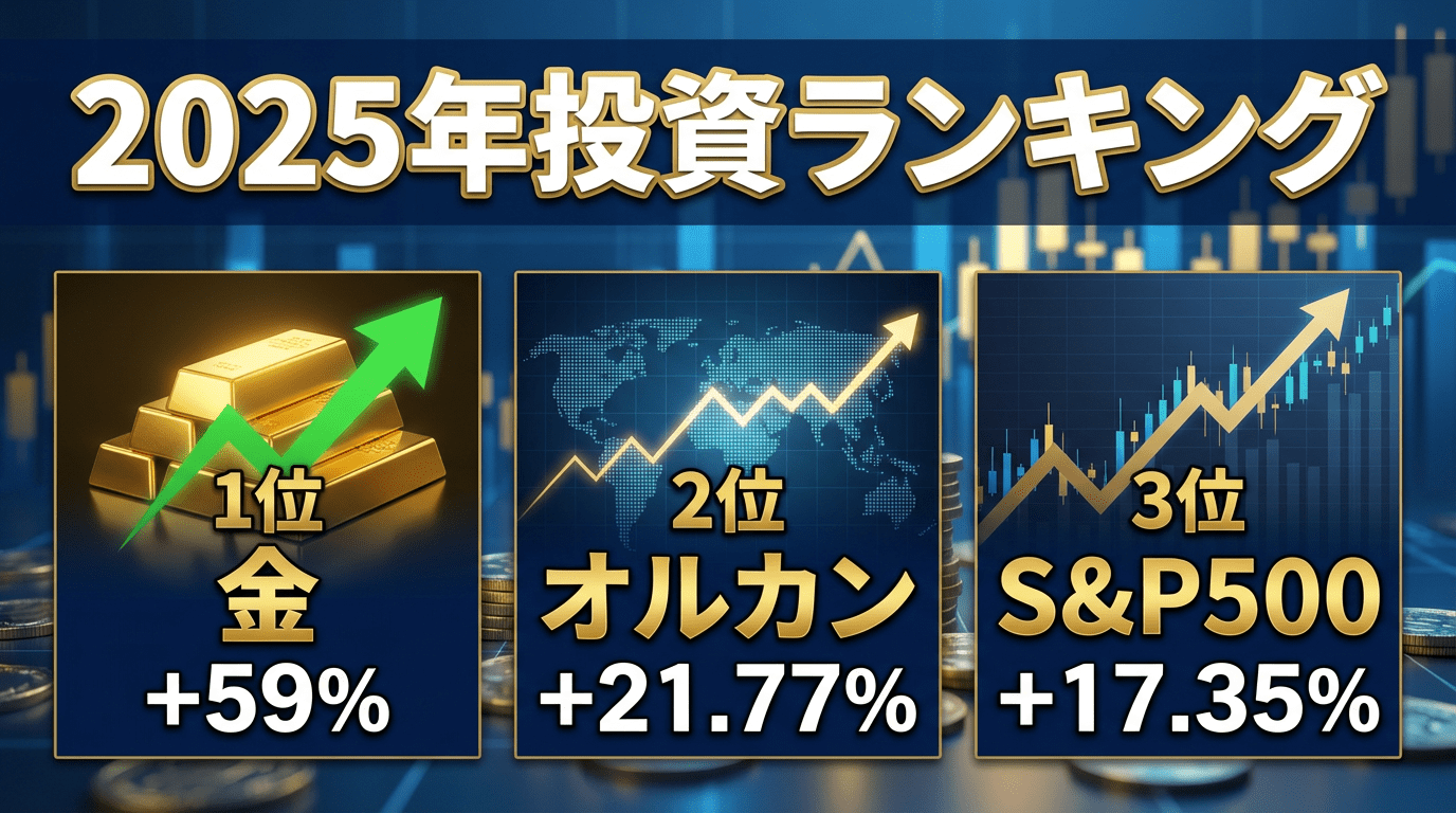 2025年の投資市場では金(ゴールド)が年間67.4%という驚異的な上昇率を記録し、主要な投資資産の中で圧倒的なパフォーマンスを示しました。一方、新NISA人気の2大巨頭であるオルカン(全世界株式)がS&P500を上回るという歴史的な逆転現象も発生。これまでの「米国株一強」の常識が揺らぎ始めています。本記事では、最新のデータに基づき、なぜ金がこれほどまでに高騰したのか、オルカンとS&P500のパフォーマンス差が生まれた本当の理由、そして2026年以降の投資戦略について徹底解説します。正確な情報で賢い投資判断をサポートします。