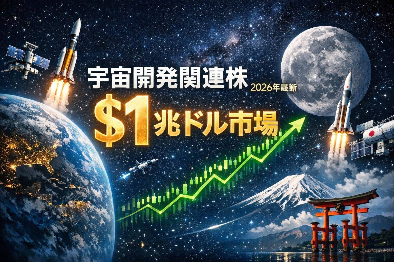 2030年までに約1兆ドル(約158兆円)に達すると予測される世界の宇宙産業市場。民間企業の参入加速と各国政府の強力な支援により、宇宙ビジネスは投資テーマとして急速に注目を集めています。2026年1月には高市首相とイタリアのメローニ首相が宇宙領域での協力体制を表明するなど、国際的な連携も活発化しています。日本政府も2030年代早期に国内宇宙産業を8兆円規模へ倍増させる目標を掲げており、関連銘柄への投資機会が拡大中です。本記事では、宇宙開発関連株の最新動向と注目銘柄を徹底解説します。