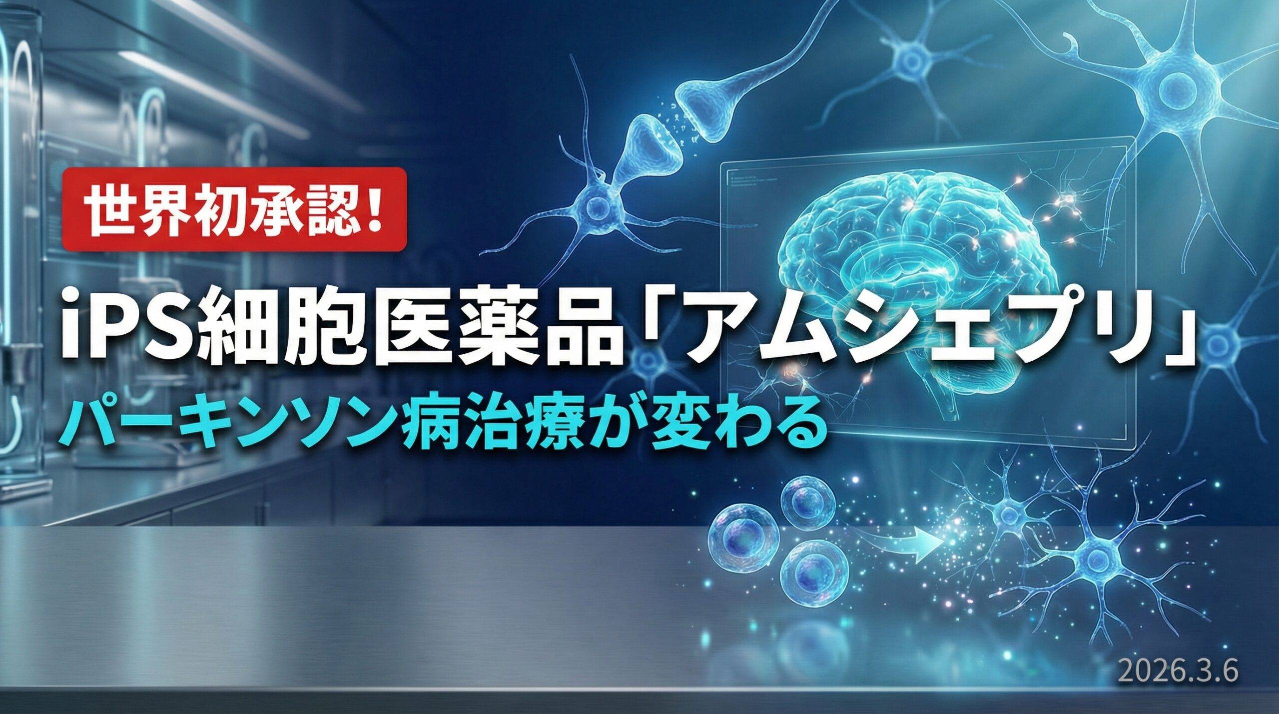 2026年3月6日——この日は、日本の医療の歴史に永遠に刻まれる一日となりました。住友ファーマ株式会社と株式会社RACTHERAは、パーキンソン病の治療を目的とした「アムシェプリ®」(一般的名称:ラグネプロセル)について、厚生労働大臣より製造販売承認(条件及び期限付承認)を取得したと正式に発表しました。これはiPS細胞(人工多能性幹細胞)由来の再生・細胞医薬品として、世界で初めて承認された製品です。