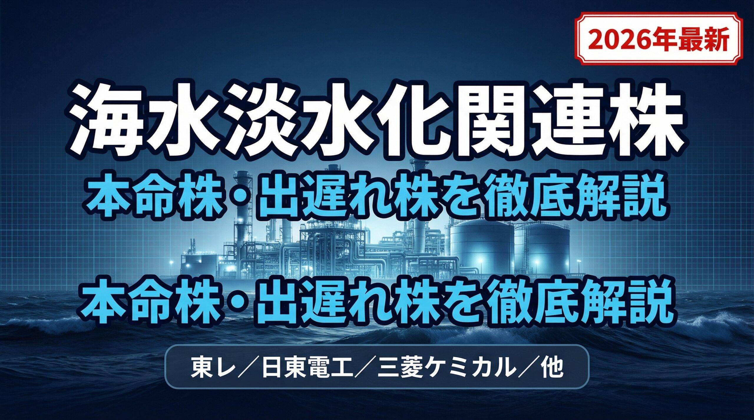 本記事では、海水淡水化関連株の本命株・出遅れ株を一覧形式で整理し、各銘柄の技術的な強みと投資上の注意点をわかりやすく解説します。中東情勢が引き起こした「水インフラ需要の爆発的拡大」という投資テーマを、ぜひ本記事で徹底的に把握してください。