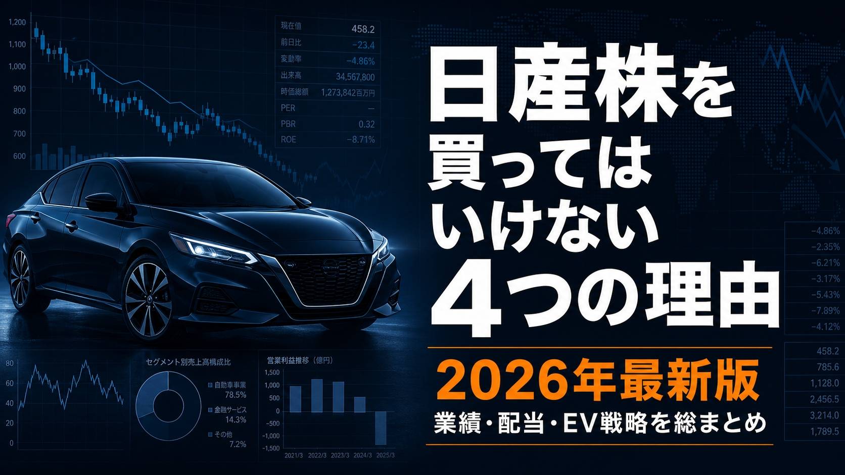 日産株を現時点で買うべきでない主な理由は3つです。①2期連続の巨額赤字(2025年3月期▲6,708億円、2026年3月期予想▲5,500億円)、②無配継続(配当ゼロ)による収益機会の喪失、③EV市場での競争力低下による構造的な利益率の悪化。これらが解消されるまでは、慎重な姿勢を保つことが投資の基本です。